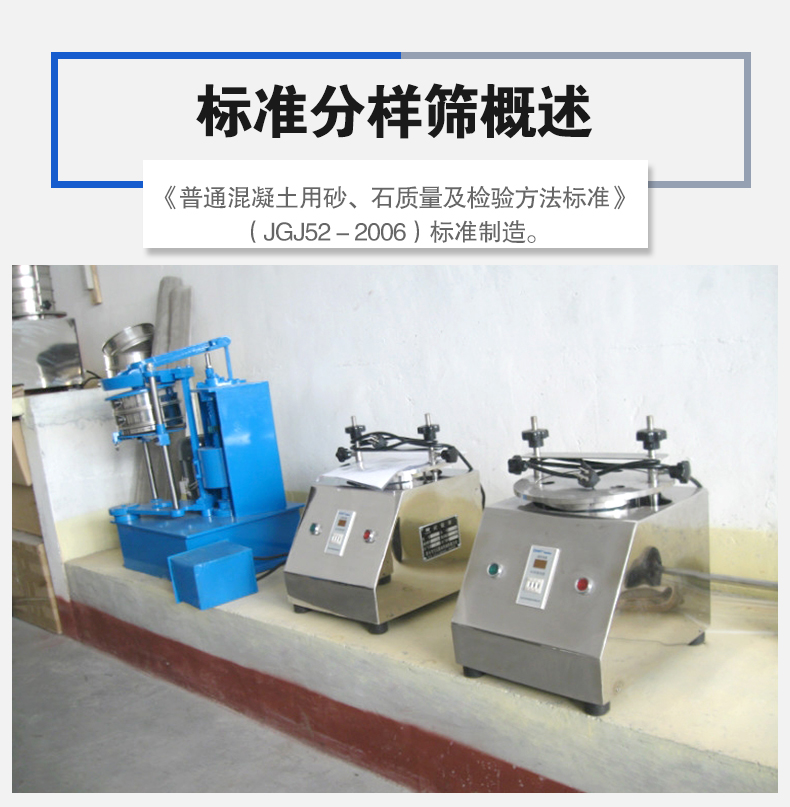 供應(yīng)標(biāo)準(zhǔn)分樣篩供應(yīng)分樣篩是按《普通混凝土用砂、石質(zhì)量及檢驗方法標(biāo)準(zhǔn)》(JGJ52-2006),對顆粒性材料進行篩分試驗用的符合標(biāo)準(zhǔn)形狀和尺寸規(guī)格要求的系列樣品篩。標(biāo)準(zhǔn)篩篩孔為正方形或圓形,適用于測定碎石或卵石中的含泥量。